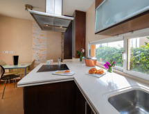 Property IDViena, 4-room house 190 m2 on 2 levels. Object suitable for 6 adults. Practical and comfortable furnishings: living/dining room 28 m2 with digital TV, air conditioning and forced-air heating. Exit to the patio, to the swimming pool. Large kitchen 12 m2 (oven, dishwasher, 4 ceramic glass hob hotplates, toaster, kettle, microwave, freezer, electric coffee machine). Sep. WC. Upper floor: 1 room 9 m2 with 1 french bed (1 x 150 cm, length 200 cm), hip bath/bidet/WC and fan. Exit to the balcony. 1 room 8 m2 with 2 beds (90 cm, length 190 cm), fan. 1 room 6 m2 with 1 french bed (1 x 135 cm, length 190 cm), fan. Exit to the balcony. Shower/bidet/WC. Terrace 40 m2. Terrace furniture, deck chairs (2). Distant view of the sea, the countryside and the resort. Facilities: washing machine, dryer, iron, hair dryer. Internet (WiFi, free). 1 small pet/ dog allowed. VT-505437-A